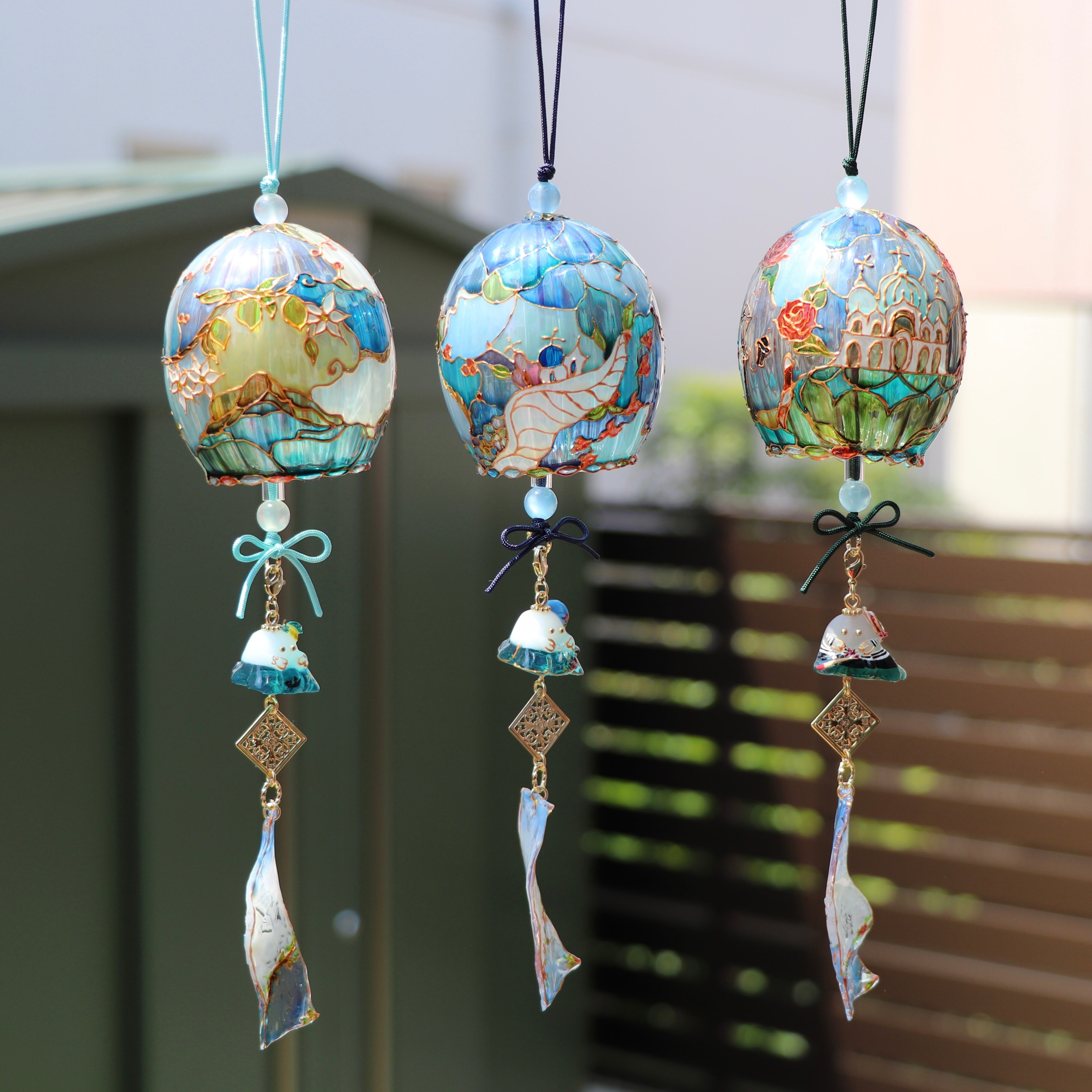▲ ひとつひとつ手作りで制作しているため、デザインや色合いが異なります。それぞれの風鈴の個性をお楽しみください。