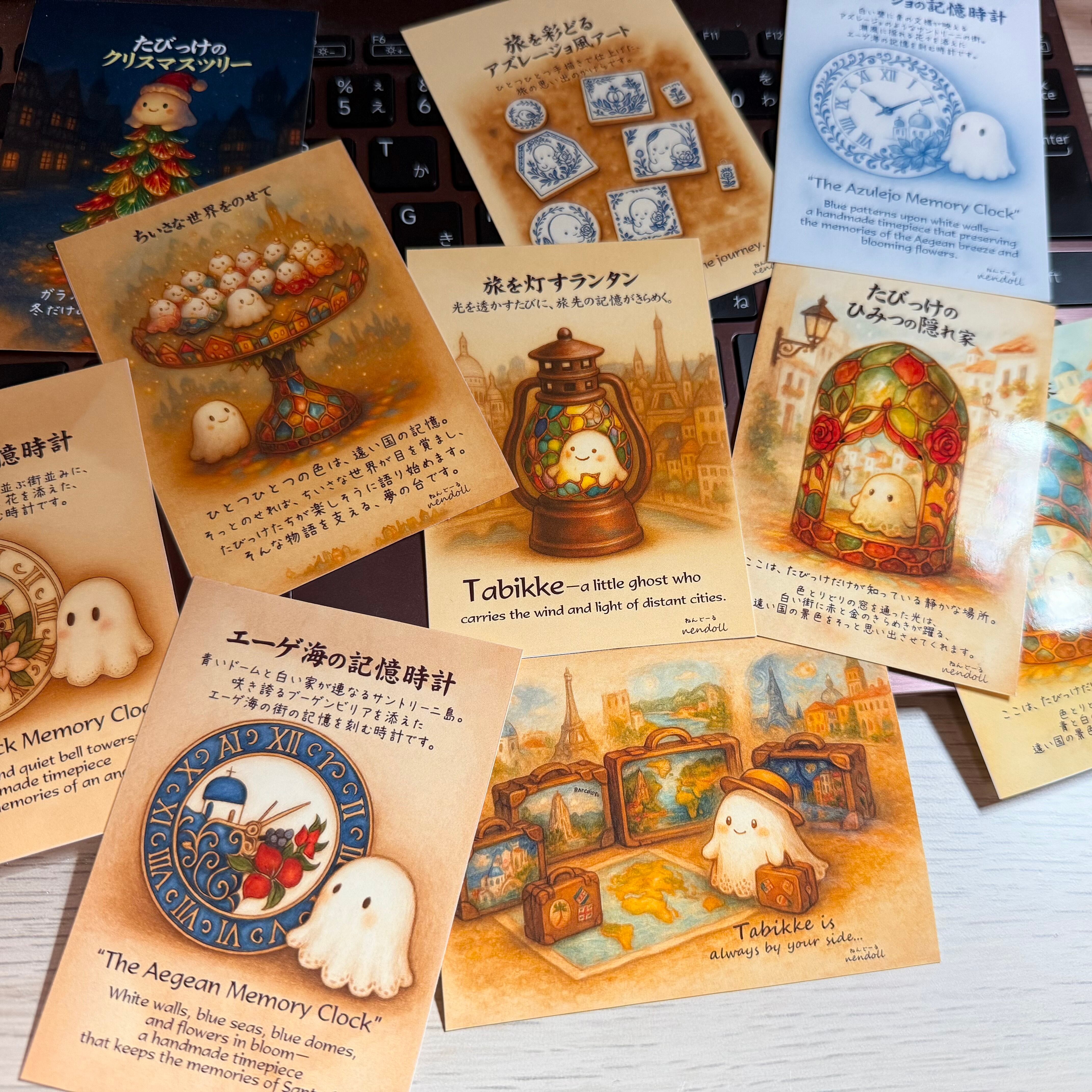 たびっけが旅した世界のワンシーンを切り取ったフルカラー作品カードのコレクションです。